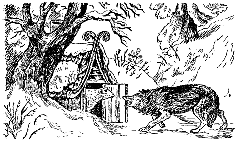 Натрупал вълкът купчина сняг, утъпкал го с крака, подмел го с опашка, направил си някак ледена колибка.