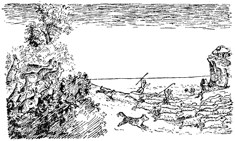 И подгонил ратаите със сопата. Размахал се и ги заудрял по гърба.