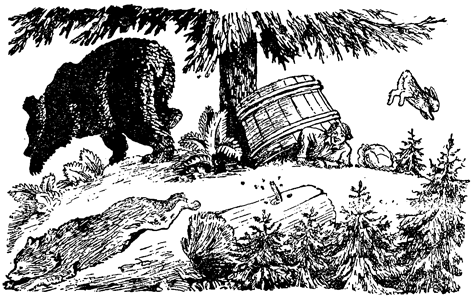 А в това време селянинът дошъл до своето сечище, взел брадвата в ръце и почнал да сече ели и борове.