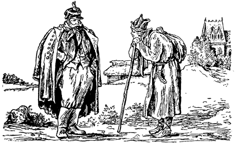 Тъкмо помислил това и гледа — насреща му иде беден старец с черна брада. Дрехата му — съвсем дрипава, едва се държи на раменете.