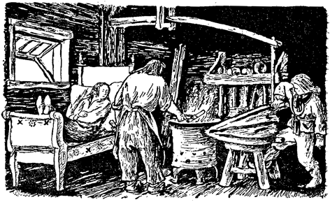 Живели старец и бабичка. Те имали син. Добър момък бил той — и послушен, и възпитан, и работлив. Старецът и бабичката трябвало само да го гледат и да му се радват. Но как да му се радват, когато няма нищо за ядене! Старецът и бабичката сами седели гладни и нямали с какво да нахранят сина си.