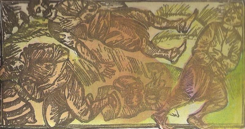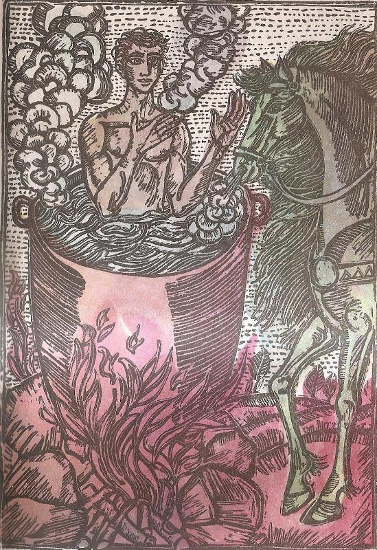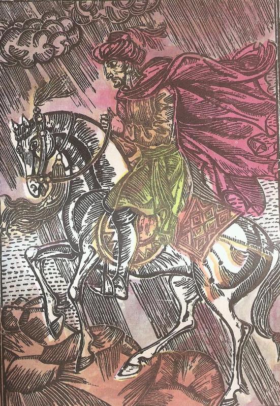Ето ти, че подир някое време се задал един намусен войник, обръжен от горе до долу: златна кана на главата, златна ризница на гърдите, препасан с широк колан, а на колана му — златен меч виси; язди той голям кон, из чиито ноздри дим дими и гдето стъпи, дупка в земята прави — не кон, а съща ламя!