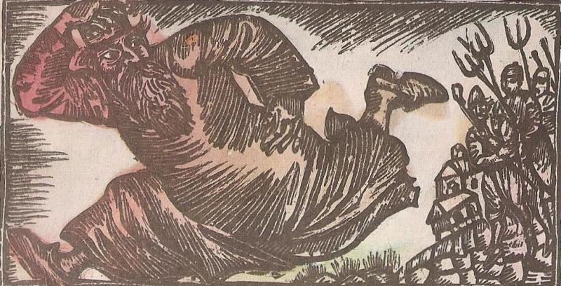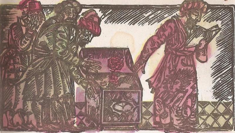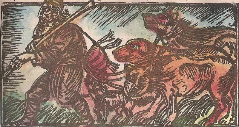 Еро затършувал из хазната. От някакъв скрин извадил дебела книга и я взел под мишница; нарамил една ръждива брадва, що била захвърлена зад вратата, а от многото пари отброил само десет гроша.