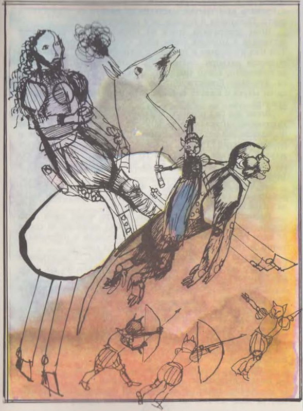 Най-сетне шествието се задало. Най-отпред вървели три полка тръбачи и всеки полк изпълнявал различна мелодия. Следвали 15 полка, яхнали катраненочерни коне, 40 ескадрона драгуни, оркестър от 1000 барабана, пикола и флейти. Музикантите носели пурпурночервени, златисти и алени униформи и заглушавали с грохота си радостните викове на тълпата. Най-после се появил и самият цар, който се усмихвал и поздравявал народа си с ръка на сърцето. Той яздел начело на армия, която се проточвала на километри след него. Всеки от славните воини в ослепителни доспехи носел меч и сабя, копие и арбалет, огнени езици и гръцки огън за подпалване на неприятелските станове, старовремска пушка с фитил и гайда. Слава, слава, слава! Победа, победа! Вятърът развявал знамената, тълпата надавала възторжени викове, камбаните звънтели, ловджийските рогове силно свирели, а барабаните биели от всички страни с такова упоение, че само дето не се пукали.