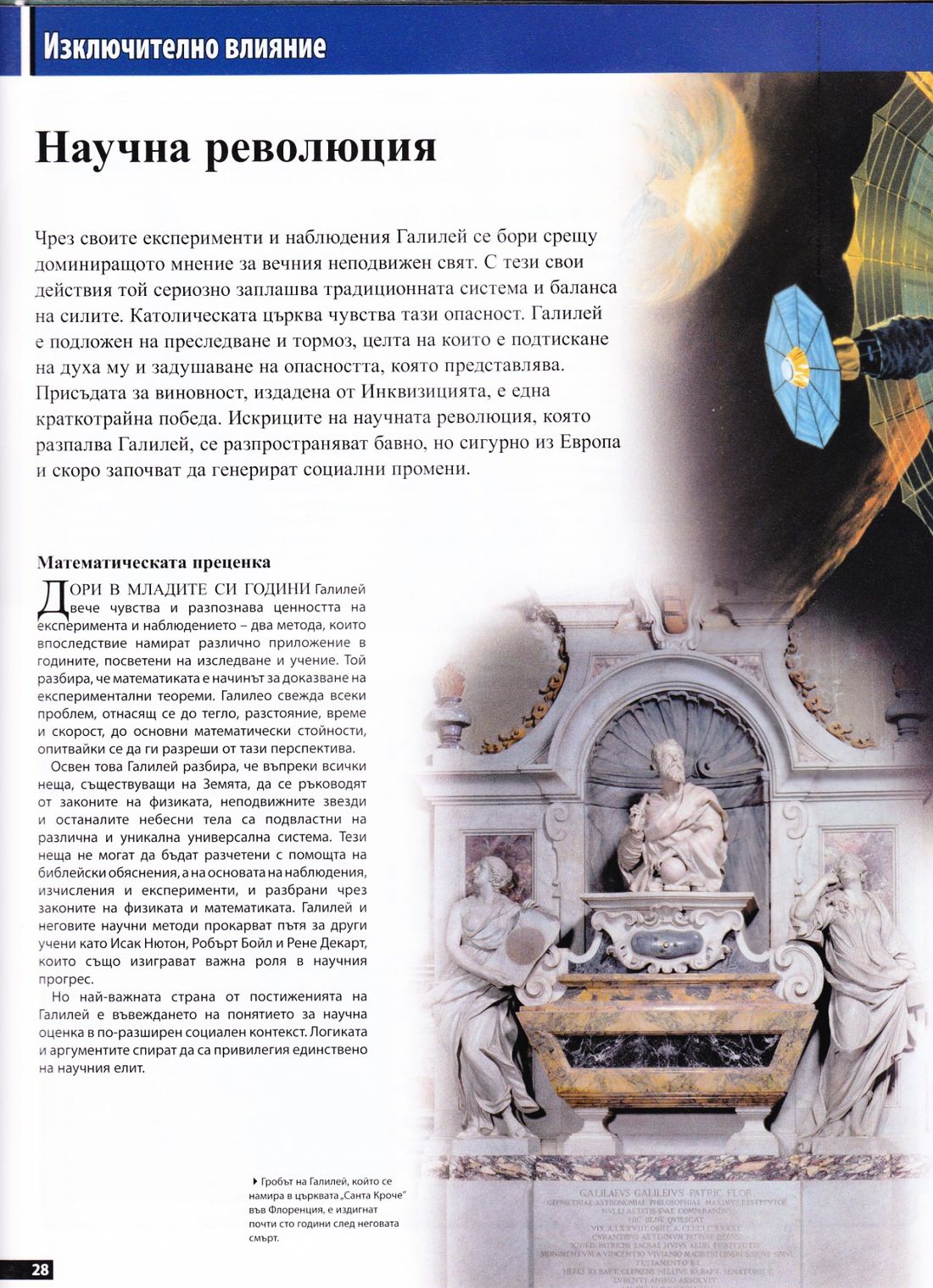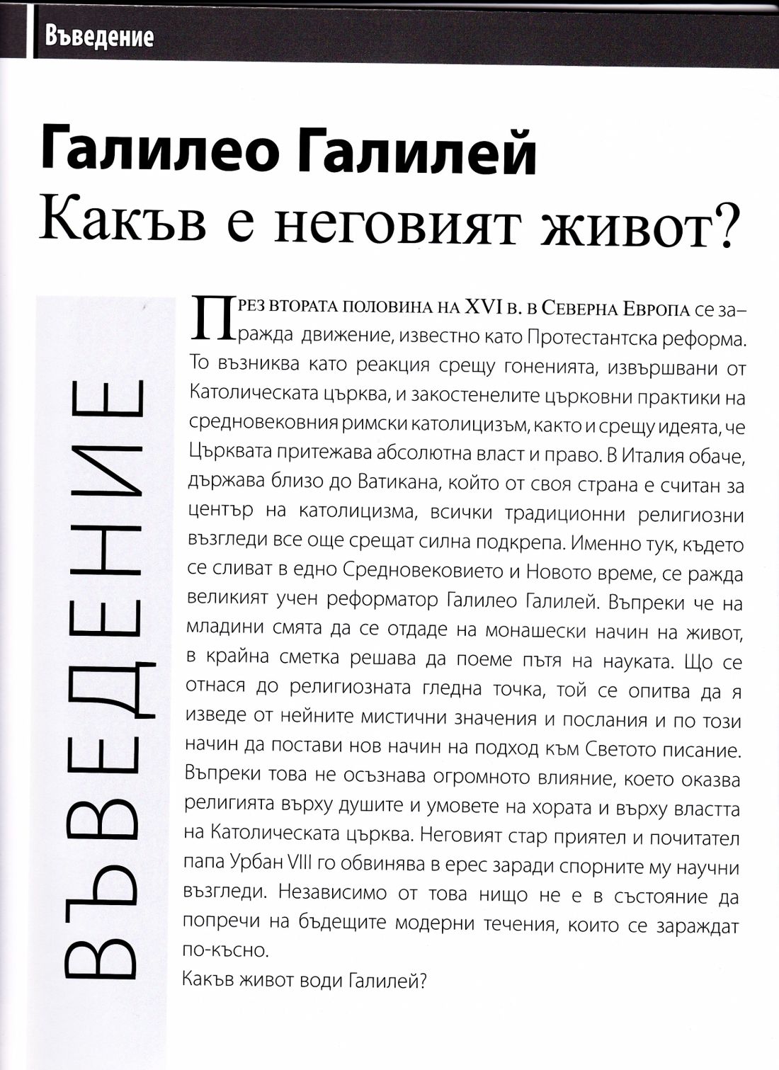 В Италия обаче, държава близо до Ватикана, който от своя страна е считан за център на католицизма, всички традиционни религиозни възгледи все още срещат силна подкрепа. Именно тук, където се сливат в едно Средновековието и Новото време, се ражда великият учен реформатор Галилео Галилей. Въпреки че на младини смята да се отдаде на монашески начин на живот, в крайна сметка решава да поеме пътя на науката. Що се отнася до религиозната гледна точка, той се опитва да я изведе от нейните мистични значения и послания и по този начин да постави нов начин на подход към Светото писание. Въпреки това не осъзнава огромното влияние, което оказва религията върху душите и умовете на хората и върху властта на Католическата църква. Неговият стар приятел и почитател папа Урбан VIII го обвинява в ерес заради спорните му научни възгледи. Независимо от това нищо не е в състояние да попречи на бъдещите модерни течения, които се зараждат по-късно.