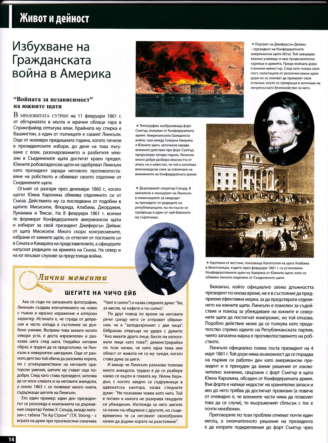 Колкото повече се разширява страната, толкова по-силно се задълбочава пропастта между Севера и Юга. Корените на този конфликт се крият в идеологията на робството. И докато надеждата за компромис и помирение между северните и южните щати постепенно угасва, извървял дългия си път от детството, прекарано в дървена хижа, до тържествения блясък на Белия дом. Името на този човек е Ейбрахам Линкълн.