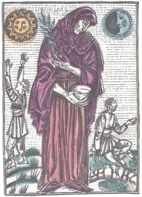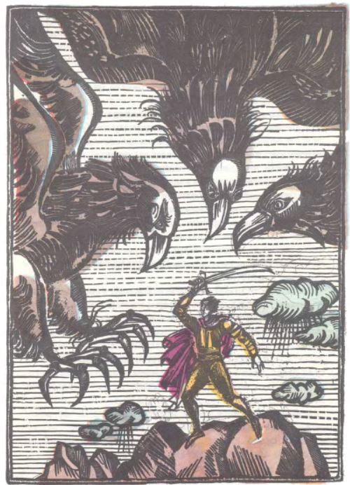 Щом се развиделило, тръгнал пак да обикаля острова. Нийде не зърнал нито пътечка, ни дори следа от живина. По пладне се изкачил на една височина. От нея се виждало надалеч. Съгледал под нозете си поленце с ниви и ливади, отвред оградено от ридове и планинки — също като родното му поле. „Сполай ти, господи — рекъл си Силян. — Дали пък по някакво чудо не съм се върнал из нашите места, или пък сън наяве виждам? Ама, както и да е, щом полето е работено, значи и люде ще има тук.“ Така си мислел Силян, докато вървял по пътя, който го извел на една могилка насред полето. Качил се на върха и чул наблизо гласове. Ослушал се — нищо не разбрал, защото тоя говор приличал на някакво свраче чавкане. Гласовете наближили и той се закрил зад една трънка, че не знаел какво иде насреща му — орли мършояди или стръвни зверове. По едно време надигнал глава. Видял мъж и жена да косят тревата. И двамата били високи, дългокраки и с носове два пъти по-дълги от нашите. Размахвали те косите нашироко и си приказвали на свой език.