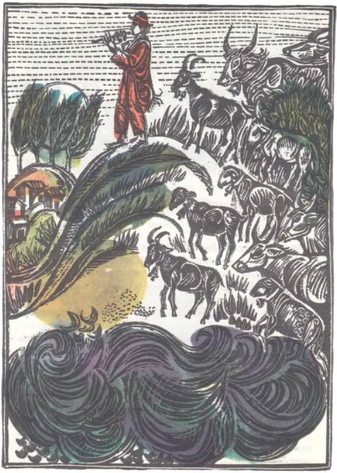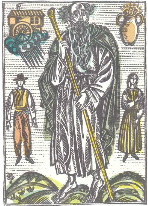 Това се случило преди много, много години. Тогава земята била плоска като тепсия и неприветна като пустиня: нямало нито планини, нито долини, нито морета, нито полета. Тогава нямало лято и зима, ден и нощ; слънцето и месечината се разхождали по небето ръка за ръка, а вълкът и агнето от една копаня ядели. Тогава всякакви неща ставали по света, каквито сега не стават…