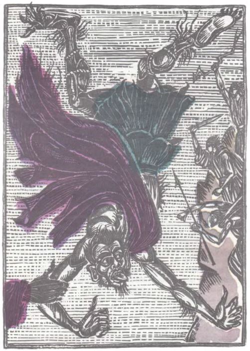 Политнал божият ратай нагоре-надолу, тук-там, намерил най-сетне нечестивеца: спотаил се бил зад един тъмен облак и тъкмо си гледал в пазвата — броял си краденото. Хванал го ангелът за козето ухо, отвел го при дядо господ.