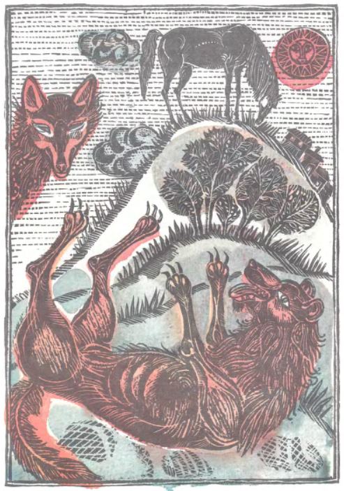Видяла кума Лиса всичко и не знаела да се смее ли, или да жали своя побратим. Щом си отишъл конят, тя се приближила до чакала и видяла, че очите му били само кръв и целият треперел като от треска.