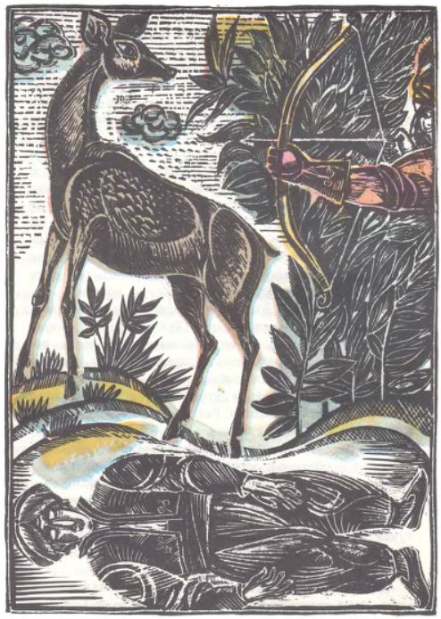 — Ха тъй! Ще ядем прясно месце. Води ме сега там, дето има лов! — тъй рекъл чакалът, пък забравил, че лисицата трябва да му пожелае и „На слука“.