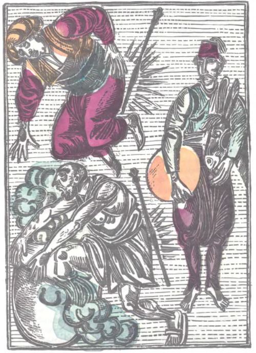 Разтреперан, излезнал нашият страдалец иззад трънката при косачите. Щом го видели, те оставили косите. Изчаткали си нещо на техния език и се разсмели.