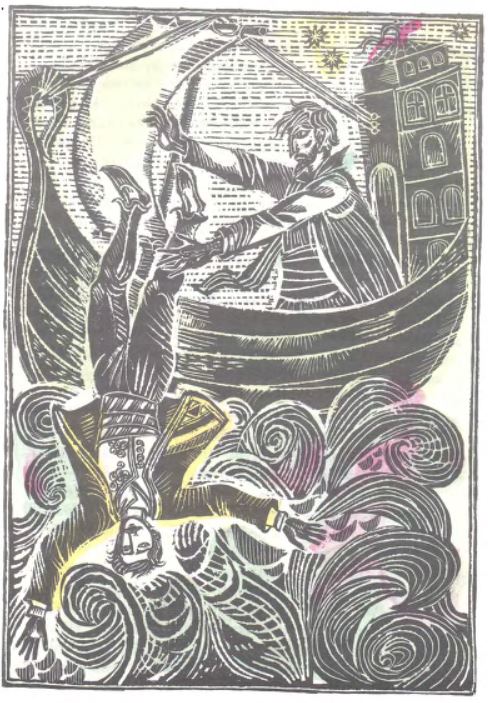 Отишли двамата на пристана. Качили се на гемията, която заминавала за хаджилък. Моряците вдигнали котвата, разпънали платната. Литнала гемията по водата като бяла чайка. Плавали така няколко дни. По едно време небето се смрачило, посред бял ден станало тъмно като в беззвездна нощ; излезнал силен вятър, вдигнали се вълни планини. Понесла се гемията — орехова черупка по морските ширини. Седмица се люшкала насам-натам, накрай загубила пътя. Изплашили се всички пътници и моряци, почнали да се кръстят.