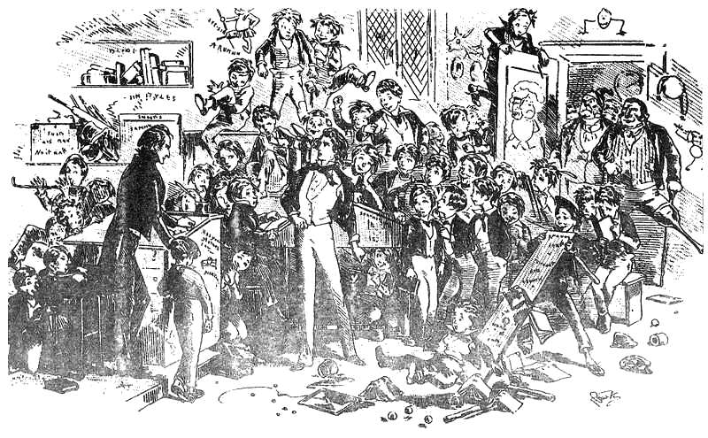 Един ден мистър Крийкъл пазеше стаята поради неразположение и, естествено, това събуди голяма радост в цялото училище. През цялата сутрин сградата ечеше от шум и врява. Голямото облекчение и доволство на момчетата ги правеше мъчни за обуздаване. И макар че страшният Тънгей довлече дървения си крак два или три пъти и взе имената на главните немирници, това не направи голямо впечатление, тъй като всички знаеха, че каквото и да правят днес, утре непременно ще си изпатят, така че решиха поне да се налудуват хубавичко.
