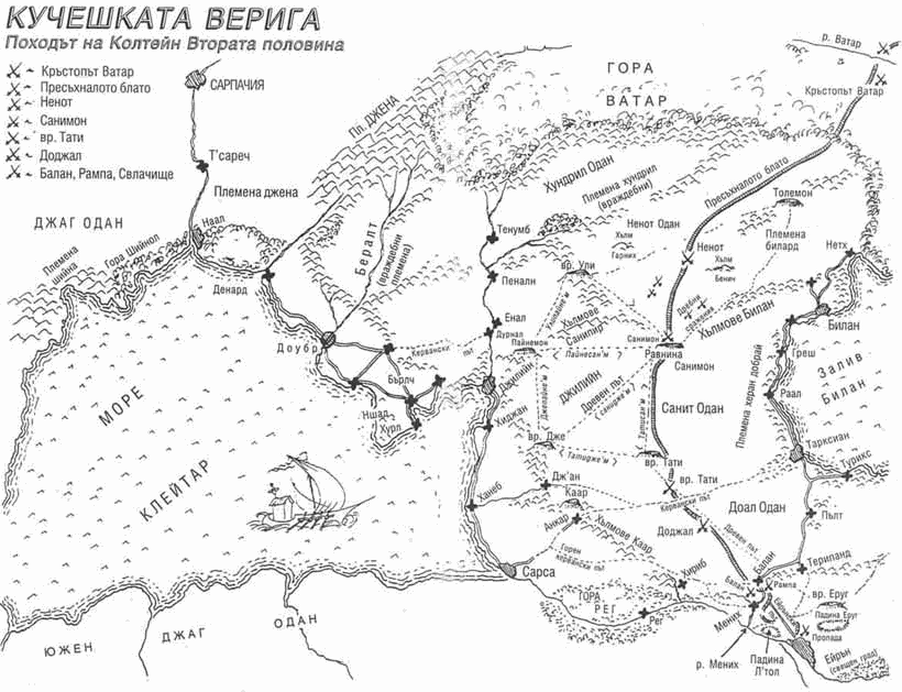 Кучешката верига: Походната колона на Колтейн, включваща войници и бежанци, на път от Хисар за Ейрън