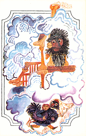 Когато стъпил на земята, майка му събирала бързо златите монети, пръснати в градината, защото торбата, разбира се, се била пръснала.