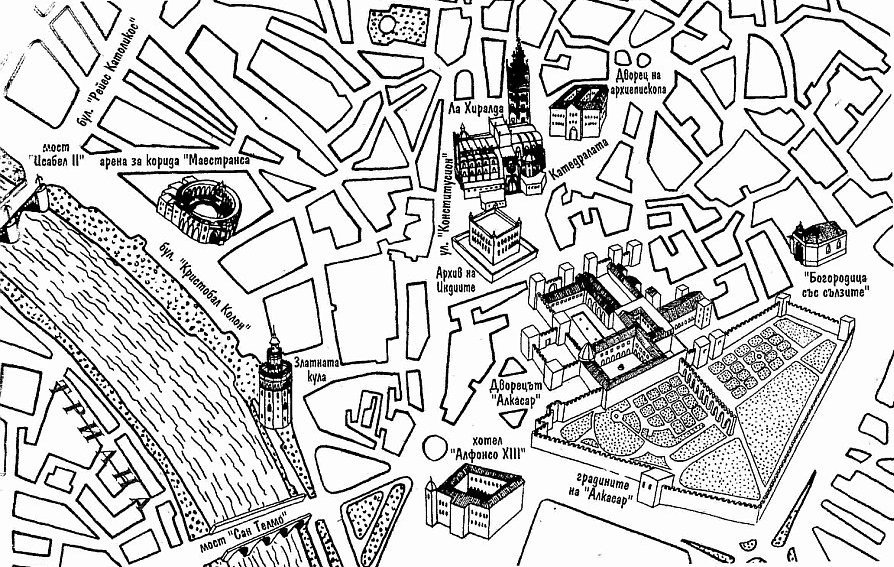 Свещеници, банкери, хакери, херцогини и мошеници — всички образи в този роман са измислени. Всяка прилика с действителни лица е плод на случайност. Истинска е само сцената. Никой не би могъл да измисли град като Севиля.