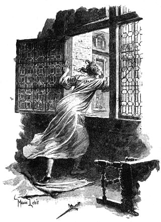 Кети разбираше повече, отколкото трябва. В миг тя му надяна една рокля на цветчета, широка шапка и наметка: подаде му пантофи, в които той пъхна босите си крака, после го повлече по стъпалата. Тъкмо навреме — милейди беше вече звъняла и събудила целия дом. Вратарят отвори в момента, когато милейди, също полугола, крещеше на прозореца: