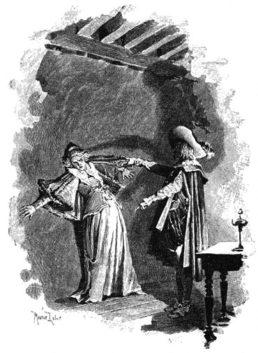Милейди, бледа като мъртвец, поиска да извика, но схванатият й език издаде само някакъв хрипкав звук, който нямаше нищо общо с човешки глас и напомняше хъркане на хищен звяр. Прилепена о тъмната стена, с разпуснати коси, тя сякаш беше страшно олицетворение на ужаса.