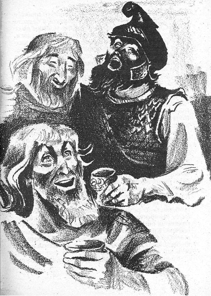 В същия миг от двореца излезе, олюлявайки се под огромния товар, Терес Бунтовника, понесъл на гръб няколко легионери, които се опитваха и все не успяваха да го свалят на земята.