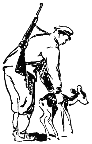 Вълко излезе от своето скривалище, хвана еленчето и сърдито ритна лисугера. После, като притискаше към гърдите си нежното теленце, което риташе със слабите си крачета, той прегледа мястото, където бе стрелял на въглищарката. Куршумът беше изровил широка бразда във влажната земя. Там се виждаше снопче сива козина.