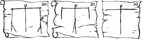 И другите картинки също така бяха отначало много красиви, подробни и мъчни за рисуване (особено на гладно сърце), но постепенно, от много повтаряне, те станаха по-прости и по-лесни и накрая Тегумай каза, че е доволен от тях. За звука „Ф“, който фучеше като вятъра зиме, те нарисуваха кръглия вход на Пещерата им, пресечен през средата от една отвесна черта, като знак, че входът е затворен, защото не можаха да нарисуват кожите.
