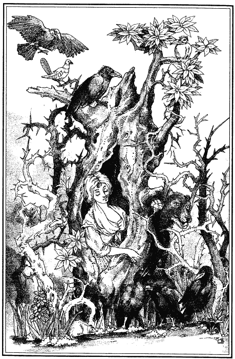 Тогава момичето потънало в дълбок сън, а като се събудило, лежало долу, на земята, сред един пущинак. Искало да извика, но от устата му не излизал нито звук. Скочило на крака и понечило да избяга, но накъдето и да се обърнело, отвсякъде било заобиколено с трънаци, през които не можело да си пробие път. В пущинака, дето било затворено като пленница, имало едно старо изкорубено дърво. То му станало убежище. Момичето припълзявало вътре, когато се спуснела нощта, и спяло в хралупата, а когато гърмяло и валяло, намирало пак там подслон.