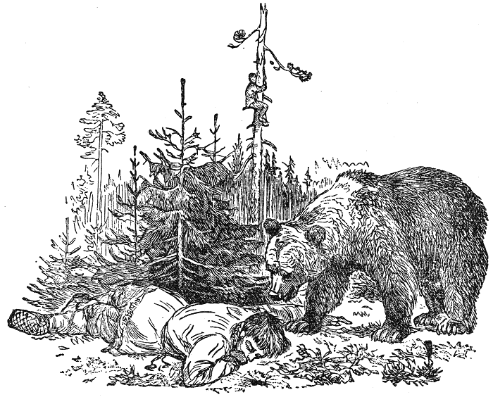 Вървели през гората двама другари и насреща им изскочила мечка. Единият се втурнал да бяга, покатерил се на едно дърво и се скрил, а другият останал на пътя. Нямало що да прави — проснал се на земята и се престорил на мъртъв.