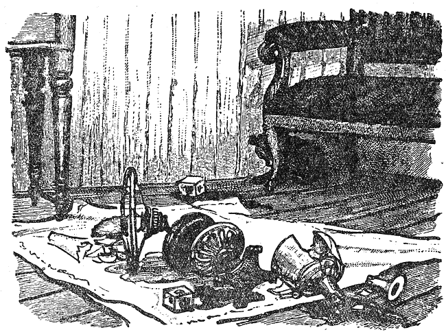 Сред стаята имаше писмена маса, покрита с мушама. Мечето по крака на масата стигнало до мушамата, хванало я със зъби, опряло се с лапи в крака и започнало да дърпа с всички сили. Дърпало, дърпало, докато не издърпало цялата мушама, а заедно с нея — лампата, две мастилници, шише с вода и изобщо всичко, което беше сложено на масата. В резултат — счупена лампа, строшено шише, разляно на пода мастило, а виновникът на целия скандал се мушнал в най-отдалечения ъгъл: оттам светеха само очите му като две въгленчета.