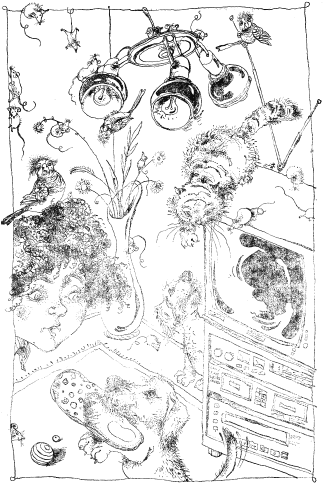 Но с течение на времето в къщата стана малко притеснено. Вероятно защото белите мишки започнаха да се множат. Постепенно в стаята на момичетата стана тясно за тях и трябваше да ги прехвърлят в стаята на кученцата, която преди това наричаха Голямата стая. Сега я прекръстиха на Голямата стая на белите мишки. В Голямата стая на белите мишки бързо се завъди голяма челяд от малките на първите бели мишки, от техните внуци и правнуци. Много от тях се настаниха в телевизора, където беше топло и приятно. Белите мишки се стрелкаха напред-назад в кутията на телевизора, а картината трептеше и прескачаше. Вече не можеха да се гледат детските предавания. А по пода почти нямаше къде да се стъпи, защото навсякъде гъмжеше от бели мишки.