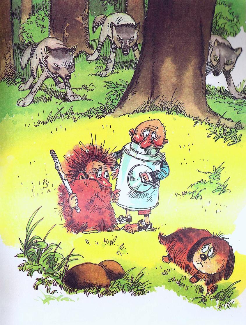 Отново се умълчаха. Но внезапно Полуобувка и Мъхеста брада се спогледаха. Якичка душеше наоколо. Изтича напред, върна се назад, после се завъртя в кръг и не отлепяше нос от земята.