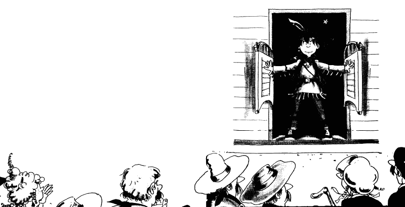 Лили се замисли, дали да не махне орловото перо от главата си. После обаче доби кураж, приглади перото си и с ритник отвори вратата на салона. Появи се с гордо вдигната глава като истинска дъщеря на някой индиански вожд. Всички притаиха дъх. Хората просто не можаха да повярват, че това индианско момиче се беше осмелило да се появи посред бял ден в града. Лили обаче се запъти смело към файтона, а тълпата й направи път. Момичето се покатери до Зили Конкарне и седна на рампата. Едва сега всички разбраха кой беше това: Лили, която можеше да стреля толкова добре. Лили, която се беше погрижила трите Торнада да бъдат заловени. Лили Куршумът, която беше изчезнала безследно толкова изненадващо, че всички си бяха помислили, че момичето е използвало магия.