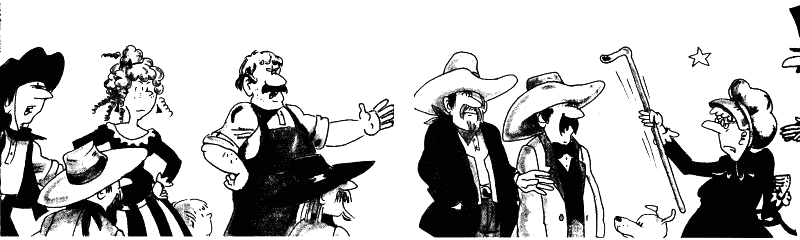 — И на нас не ни беше до шеги — зашити се Зили Конкарне. — Щяхме да се лишим от уиски и цигари. Можехме да минем и без патрони и оръжия, защото ние сме мирни хора, но червенокожите вгорчиха живота на децата ни. Всички доставки от дъвки и близалки бяха откраднати. След това се продължи с корнфлейкса, лимонадата и бибероните… А когато накрая бяха откраднати и пелените, се вкиснахме в буквалния смисъл на думата. Решихме да действаме.