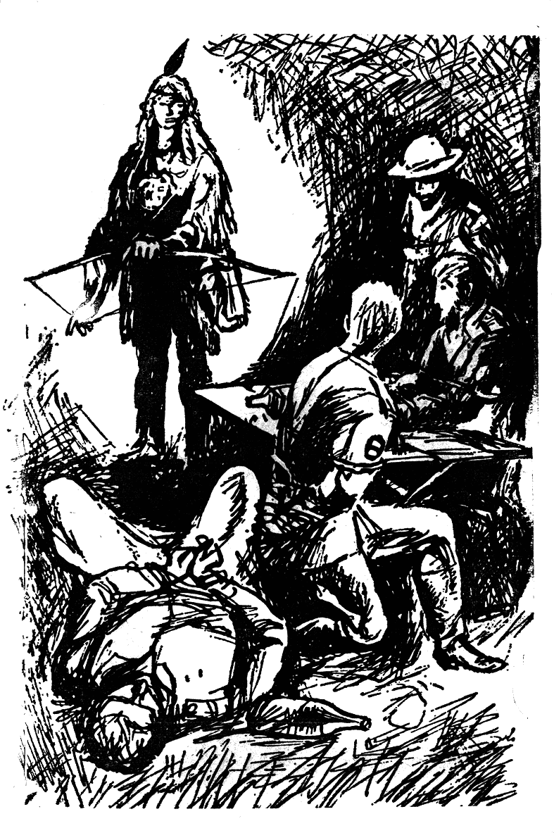 По заповед на Танто аз трябваше да охранявам белите. Търговеца още през нощта намери запасите от динамит в една от палатките на белите и като провери още веднъж заедно с Танто възлите на ръцете и краката на пленниците, замина към каньона.