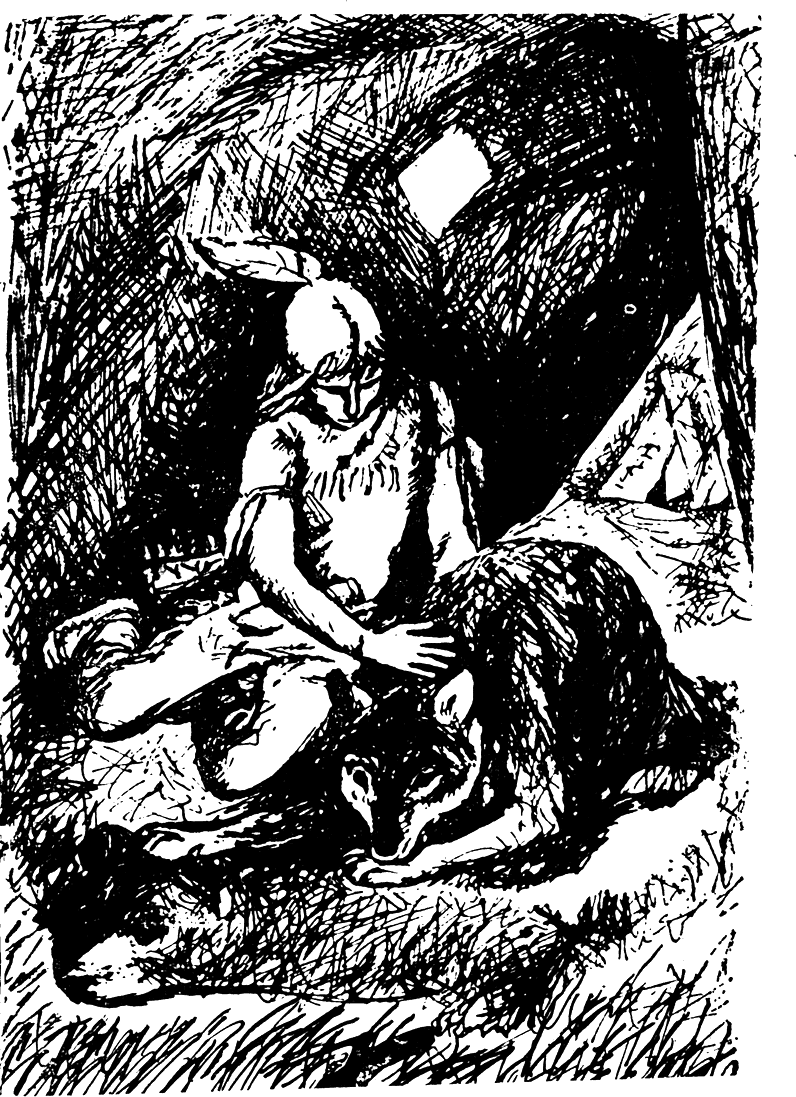След нощната буря утрото беше бистро като водата на планински поток. Добрите духове ми помагаха. Времето беше тихо, нямаше вятър. Лесно ще мога да се приближа до заешките дупки. Скачащата Кукумявка искаше да дойде с мене, но аз не се съгласих: знаех, че само аз мога да спася своя приятел, че само донесеният от мене заешки черен дроб ще го излекува. Така нареди Горчивия Плод.