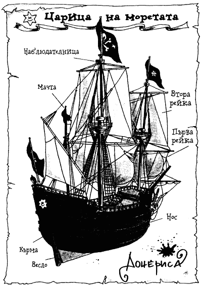 — Това беше Дезафорадо — каза то. — Най-гадният на борда. За съжаление той е толкова наясно с корабоплаването, колкото пасторът с Библията. И точно затова е вторият човек след капитана. Всички се страхуват от него. Може би дори и баща ми. Въпреки че този мъж се страхува от русалки и морски духове така, както дяволът от светената вода.