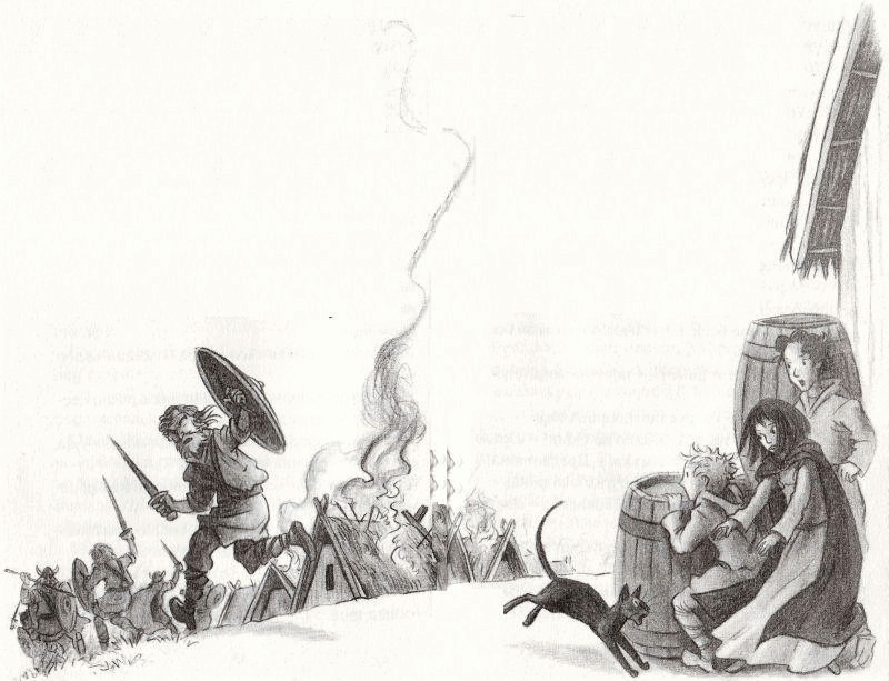 Прас! Една стрела се заби в масата. Разтреперани от страх, децата се притиснаха едно в друго, а около тях се вихреше жестока битка. Дрънкаха мечове, ехтяха крясъци, свистяха стрели.