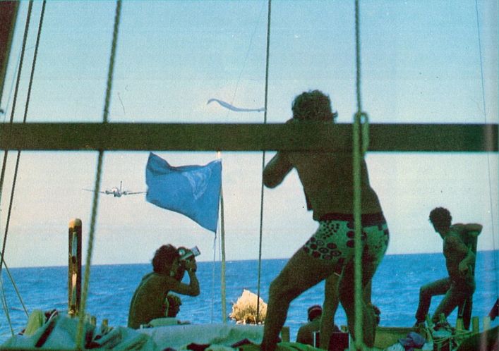 Безпомощни без вятър, ние продължавахме дрейфа си, докато доброжелателните предупреждения не секваха. Възможно било да стрелят по нас. Да бъдем изправени пред военен съд.