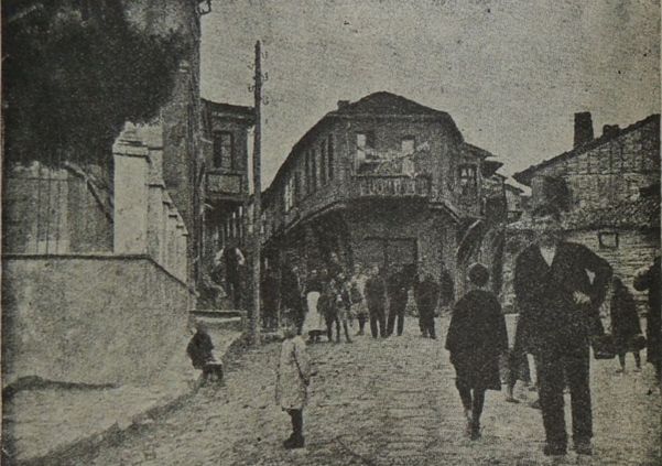 Входната улица на Созополъ — виждатъ се двѣте й разклонения — улици, които достигатъ края на града (носъ Скамни).
