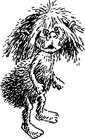 Покачила се беше върху един рид и се канеше да се спусне от другата му страна. Склонът беше съвсем стръмен, но нали тя можеше да се спре с щеките, та без страх полетя тъй, че след нея се вдигна струя сняг. На пътя й се изпречи някаква буца и тя прелетя над нея. Но насред полета едната й ска падна и когато стъпи на земята, кракът й пропадна през снега в някаква дълбока дупка. Видя как ската и се търколи надолу по стръмното и изчезна, а самата тя остана затънала чак до коляно в дупката. Отначало й се стори смешно, но престана да се смее, като разбра каква беда я е сполетяла. Кракът й не помръдваше и колкото и да го дърпаше и теглеше, не можеше да се измъкне. Дочу някакво мърморене откъм дупката и в първия миг не разбра какво е това. Но ето че малко по-нататък видя да се надигат изпод снега цял орляк опашати таласъмчета. Не беше трудно да ги разпознае по широките им задничета, дребните им сбръчкани личица и острата щръкнала коса. Обикновено опашатите таласъмчета бяха мирни и добронамерени и не причиняваха никакво зло. Обаче тия, които сега стояха и се пулеха с глупавите си очи, бяха недоволни, това се забелязваше. Те мърмореха и пухтяха, а едно от тях мрачно избърбори: