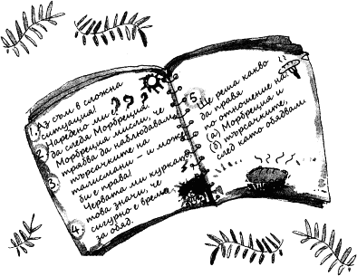 По пътя към двореца Дорк мина през Черната гора. Докато вървеше, няколко хаотични мисли се блъскаха в главата му. Трябваше да ги избистри и затова записа всичко в тефтерчето си: