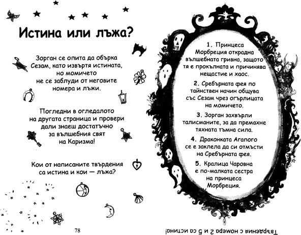 Само Зорган стоеше на пътя й. Да, днес Сезам беше преминала през огледалото на лъжата и го беше надхитрила, но… Скоро отново щеше да се изправи пред него и тогава вече щеше да се наложи да го победи със сила.