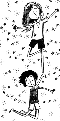 После стисна глезена на Сезам. Точно навреме! Двете заедно изхвърчаха към небето! Движеха се толкова бързо, че едва дишаха. Чувстваха се като в някакъв свръхскоростен асансьор, който се носи нагоре, без да спира — петдесет етажа и повече, през времето и пространството, право към сърцето на искрящата падаща звезда! Търсачките на талисмани не се съмняваха, че отново пътуват към вълшебната земя Каризма.