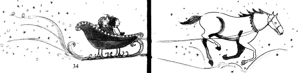 Търсачките на талисмани седяха една до друга в шейна, която се носеше със страхотна скорост през искрящо снежно поле. Шейната принадлежеше на Ледената дама и я теглеше едно прелестно петнистосиво пони на име Скрежка. Тя напомняше на Сезам за любимото й пони Сребърен, което живееше в конюшните на Джоуди Лък.