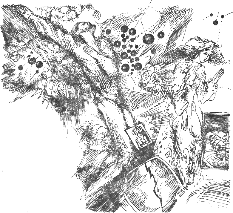 — За бога! — възкликна умолително момичето. — Тук има само един-единствен човек, който е в състояние да ви обясни. Това е професор Кизоки. Лично аз не разбирам абсолютно нищо от наука, но ще се постарая да преведа каквото мога. Най-напред, той настоява да ви кажа, че ние не сме убити, защото сме се намирали в самия център на атомното разпадане. Верижната реакция, която е предизвикало това разпадане, е протекла невъобразимо бързо. Вие разбирате за какво става дума. Скоростта е била по-голяма от тази на светлината.