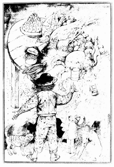 Райско място беше тая ферма на чичо Джон, особено за едно момче. Къщата беше дървена, с просторен пруст, който я свързваше с кухнята. Лете масата се слагаше в средата на този сенчест и прохладен пруст и изобилието от лакомства… ох, иде ми да се разрева, като се сетя за тях. Пържени пилета и печено свинско; диви и питомни патици, гъски и пуйки; съвсем прясно еленово месо; катерички, зайци, фазани, яребици, диви кокошки; питки с квас, топли питки от елда, топли тиганици, топъл пшеничен хляб, топли кифли, топъл царевичник; варени царевици, боб като масло, бакла, домати, грах, картофи, сладки картофи; мътеница, прясно мляко, квасено мляко; дини, какви ли не пъпеши — току-що откъснати от бостана; пита с ябълки, пита с праскови, пита с тиква, кнедли с ябълки… Вече не мога да си спомня всичко. Но най-голямата чудесия беше начинът, по който се приготовляваха тези неща — особено някои от тях. Да речем, царевичникът, топлите квасени питки, пшеничният хляб и пържените пилета. В северните щати никога не умеят да приготвят тези неща както трябва — доколкото мога да съдя, никой там не е в състояние да научи това изкуство. В Севера си мислят, че знаят как се прави царевичник, но това е огромна заблуда. На света може би няма по-вкусен хляб от южняшкия царевичник и по-лош хляб от неговото жалко подобие, което правят на север; северняците рядко се опитват да пържат пилета и слава богу, че е така; това изкуство не може да бъде усвоено северно от линията Мейсън-Диксън[1], нито пък някъде в Европа. Това не са приказки, чути от тоя, от оня — говоря от личен опит. В Европа си мислят, че навикът да се поднася хлябът още горещ е американски, но това е прекалено широко понятие; така поднасят хляба в Юга, но същото не може да се каже за Севера. В Севера и в Европа смятат, че топлият хляб е вреден за здравето. Това според мен е още една глупава заблуда, подобна на ширещата се в Европа заблуда, че не е здравословно да се пие ледена вода. В Европа не се нуждаят от ледена вода и не я пият; обаче, независимо от това тяхното определение за тази вода е по-уместно от нашето, защото дава много по-точна представа. В Европа казват „леденостудена“ вода. А от нашето определение човек добива представа за вода, получена от разтопен лед — една безвкусна течност, каквато всъщност ние не познаваме.