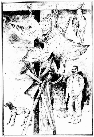 Помня и сезона на гълъбите, когато те долетяваха с милиони и отрупваха дърветата, чиито клони се кършеха от тежестта им. Избивахме ги с тояги; пушки не бяха нужни и не се използуваха. Помня как ходехме на лов за катерички, диви кокошки, диви пуйки и други такива; как излизахме сутрин още по тъмно и тръгвахме на път, колко студено и мрачно беше и колко често съм съжалявал, че съм тръгнал. Само едно изсвирване на тръбата привличаше два пъти повече кучета, отколкото бяха необходими, и в своята радост те препускаха и се боричкаха като бесни, събаряха по-малките деца и вдигаха вой до бога. Дадеше ли им се знак, те изчезваха в гората, а ние тръгвахме смълчани по тях в угнетяващия мрак. Но след малко първата зора се сипваше над света, птичките зачуруликаха, слънцето се издигаше и разливаше навред светлина и успокоение и всичко беше свежо, росно и дъхаво, и животът пак ставаше весел. След тричасово скитане, отмалели от здрава умора, претоварени с дивеч, изгладнели, ние се връщахме точно навреме за закуска.