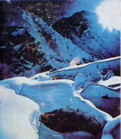 През пролетта на 1973 г. Гуидо Монцино — италианският милионер, който ни отстъпи резервацията си за есента на 1972 г. и по такъв начин ни позволи да си опитаме щастието — организира многочислена експедиция, за да повтори маршрута по Южното седло. Експедицията използуваше два хеликоптера, с които се надяваха да изнесат съоръжението над Ледопада, та дори и в Западния циркус. Намерението на италианците предизвика спорове, защото Ледопада, както и долната част на върха са неразделна част от цялото изкачване и да се използува летателна машина за решаването на проблеми, които изискват точни изчисления за придвижване на хората и изнасяне на провизии и съоръжения, се прие като неприятно нарушение на алпийската етика. Монцино би могъл да възрази, че е за предпочитане да се използува самолет, вместо да се рискува животът на шерпите, които главно се излагат на опасност при пренасянето на товарите през Ледопада и в Западния циркус, но в случая този аргумент стана излишен. Оказа се, че на такава височина хеликоптерите не можеха да заместят достатъчно ефективно шерпите и затова с тях започнаха да изкачват алпинистите до височинните лагери и да ги свалят за почивките им. Най-сетне се намеси и съдбата — един от хеликоптерите се разби, за щастие, без да пострадат хората на борда му, и това сложи край на скъпия експеримент. Нашето възражение срещу използуването на хеликоптери по Еверест е продиктувано от естетически съображения, защото една от красотите на Западния циркус е неговата величествена тишина. Не само звукът, но и видът на бръмчащ из циркуса хеликоптер е грозно, дори непоносимо натрапничество. Въпреки тези проблеми италианците успяха да изкачат 8 души на Еверест, използувайки класическия маршрут по Югоизточния гребен.