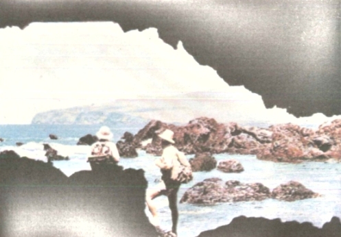 Стоях на четири крака върху мъничката издатина, а малкото отвърстие в скалата се намираше на друга, още по-малка издатинка на същото равнище, но малко встрани. За да стигна до него, трябваше да се протегна напред и да сграбча ръба на другото стъпало. Легнах по корем и вмъкнах ръцете и главата си в дупката над едната издатина, а коленете и краката ми лежаха още на другата. Коремът ми беше надвиснал над бездната и прибоя. Дупката, през която се мъчех да се вмъкна, беше толкова тясна, че гащите ми се смъкнаха на няколко пъти. Скалата дереше и режеше гърба и бедрата ми, защото почти нямаше пясък, а само грапава твърда лава.