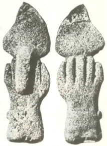 Всяка от тези многобройни подземни скулптури беше съвършено различна от всичко, което бяхме виждали дотогава. Забелязах един-единствен традиционен за Великденския остров мотив — прав птицечовек с дълъг клюн и с ръце на гърба си, — но такива фигури се изрязват само от дърво и дотогава никой още не бе чувал за някоя статуетка тангата ману, изсечена от камък. Имаше и малки каменни копия на особените весла, които се правят на Великденския остров. Всъщност там имаше всичко — от човешки същества и млекопитаещи до птици, влечуги, риби и безгръбначни, а не липсваха и фантастични хибриди. Тук-таме имаше по няколко фигури, изваяни върху един камък като например двама птицехора, които държаха по средата някакво странно животно, подобно на котка. Имаше и много изопачени фигури, чудовища с глави по цялото тяло, и някои скулптури, за които никой от нас не можа да разбере какво представляват.